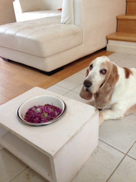 (我が家のわんこは大きい子たちなので大きめに切りました。)